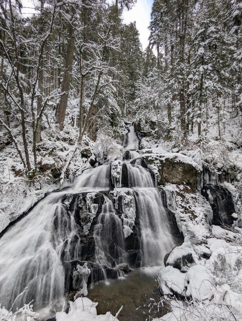 Photos: Me and the waterfall, taken by a friend. Bonus photo: Beautiful ice and snow crusted falls.